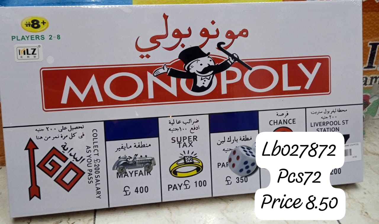 | LB027876 | MONOPOLY GAME (72 PCS) | In stock | 11.00 AED | |