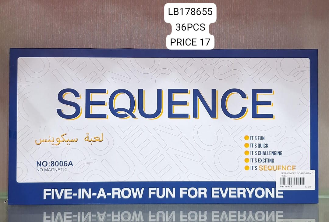 | LB178655 | SEQUENCES BOARD GAME (36 PCS) | In stock | 17.00 AED | |
